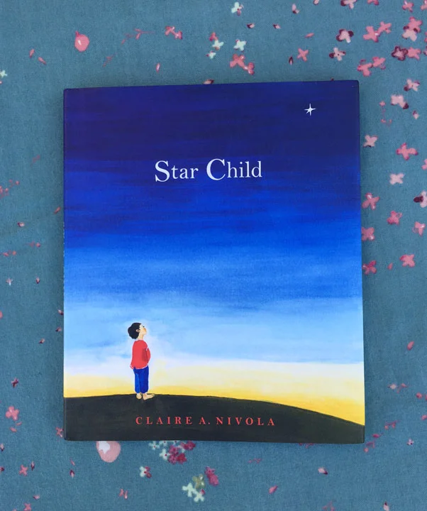 Claire A. Nivola's elegant little book Star Child tells the story of the human life cycle through the eyes of a star born on Earth. It touches on change, love and loss in a way somewhat reminiscent of The Little Prince. The Star Child is a vapor of timeless flame who longs to visit the Earth. His star elders tell the story of how he would be born human, grow up, fall in love with the beautiful world, and be swept up in our river of time.